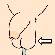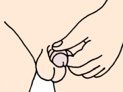 V klidovém stavu je předkožka většinou natažená na žaludu. Pro její stahování používáme ukazováček a palec jedné ruky.