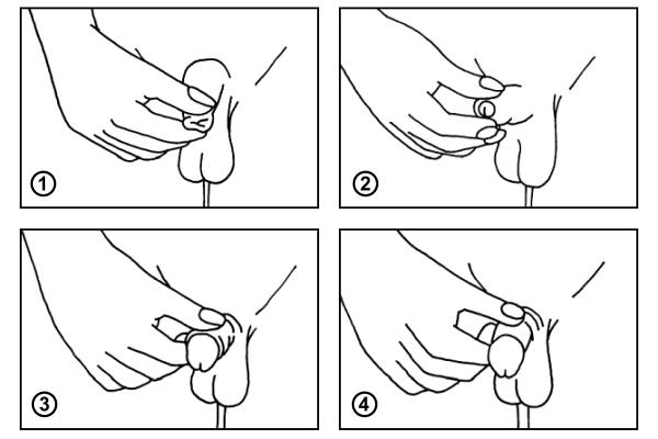 Pokud sis dosud předkožku nepřetahoval, měl bys při pokusech o její přetažení postupovat opatrně. Především bys neměl dělat nic, co by ti způsobovalo bolest. Předkožku si můžeš zkoušet jemně posunovat směrem za žalud, jako na obrázku. Pokud by však toto posunování bylo bolestivé, je pravděpodobné, že u tebe dosud přetrvává buď konglutinace, nebo zúžení předkožky, případně obojí.